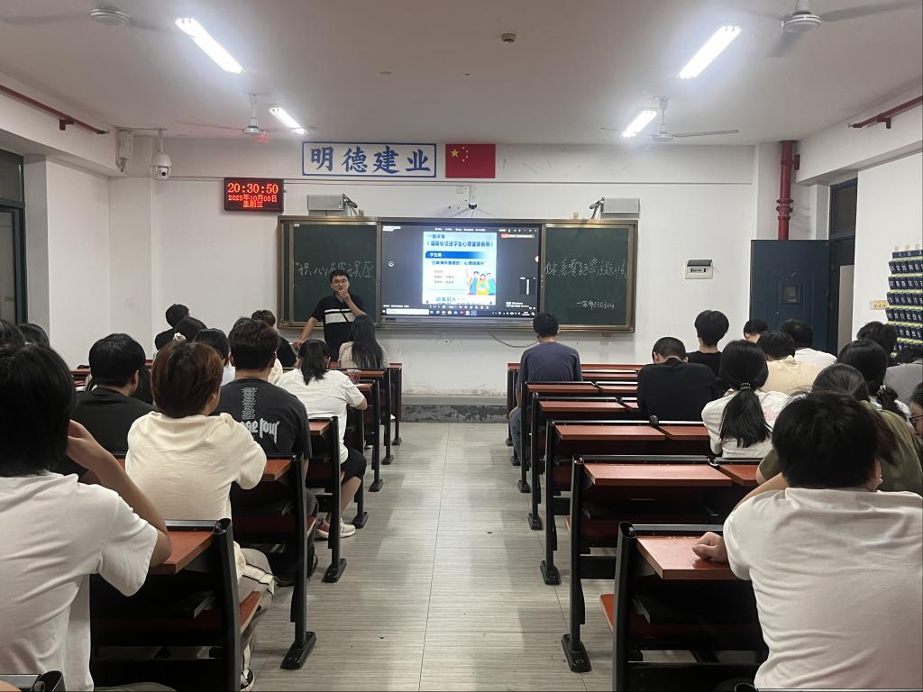 前期,各系结合学生专业特点与认知水平,提前梳理《湖南省学生心理健康促进条例》学生版核心内容,准备案例素材、讨论议题等资料,确保班会内容贴合学生需求。 班会开展过程中,各班以“条例解读+案例分析+小组互动”的形式展开。班主任或心理委员先通过PPT讲解条例中关于家庭、学校、社会、政府在学生心理健康促进中的责任划分,结合“学生因学业压力产生焦虑如何应对”“校园心理支持资源如何使用”等贴近学生生活的案例,让抽象条款变得具象易懂。