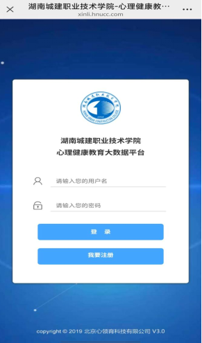 (3)进入心理系统登录界面。输入用户名(学号)和密码(a学号@姓氏首字母大写),进入系统。
